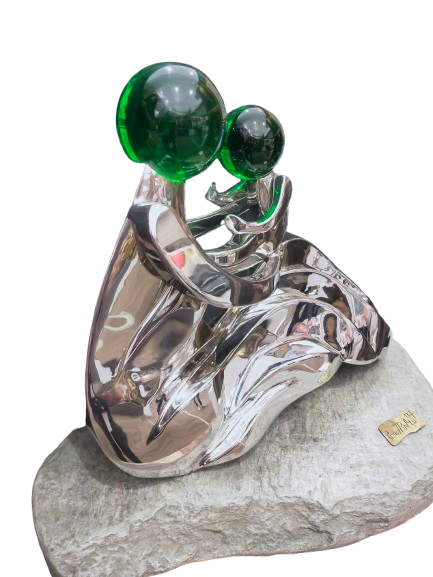 Artwork in formed and welded stainless sheets and crystal ball